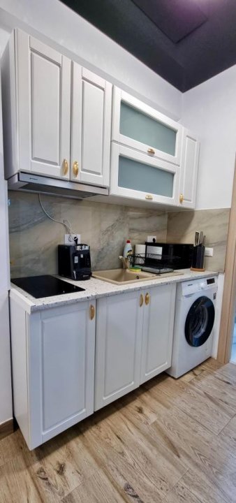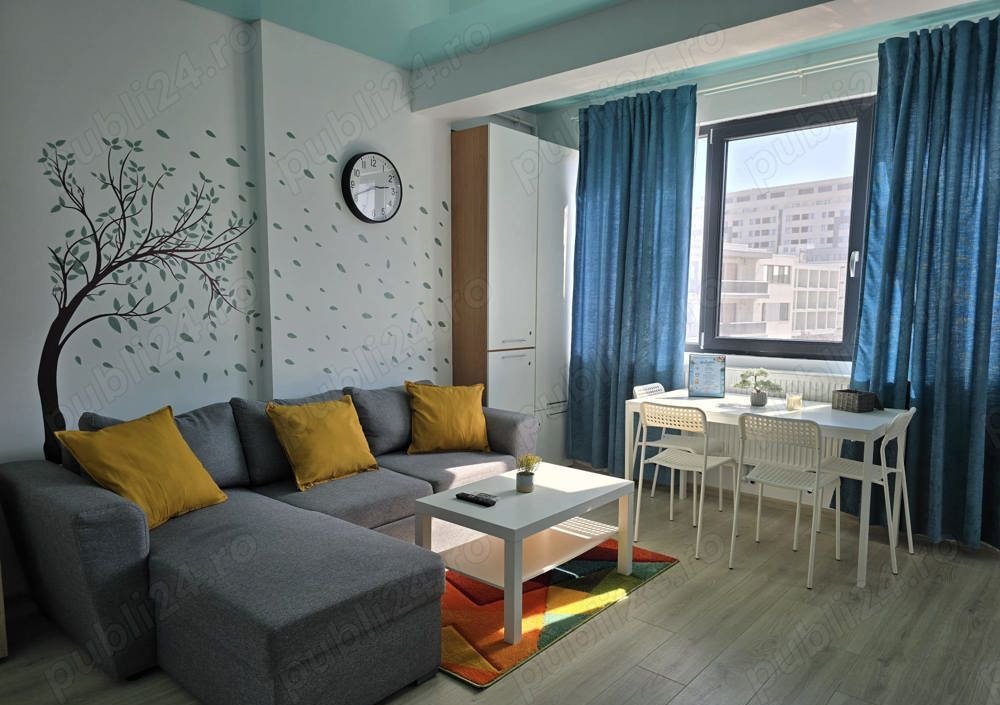 Se vinde complet mobilat și utilat, cu electrocasnice și dotări moderne: frigider, plită electrică, cuptor, mașină de spălat, smart TV, aer condiționat, internet.