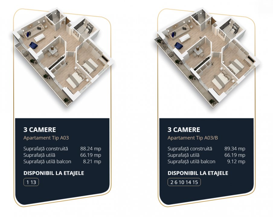 *Prețurile afișate sunt valabile pentru achitarea unui avans de 25%. Pentru plata integrală se acordă un discount de 10%. Pentru achitarea unui avans de minim 70%, se acordă un discount de 8%.