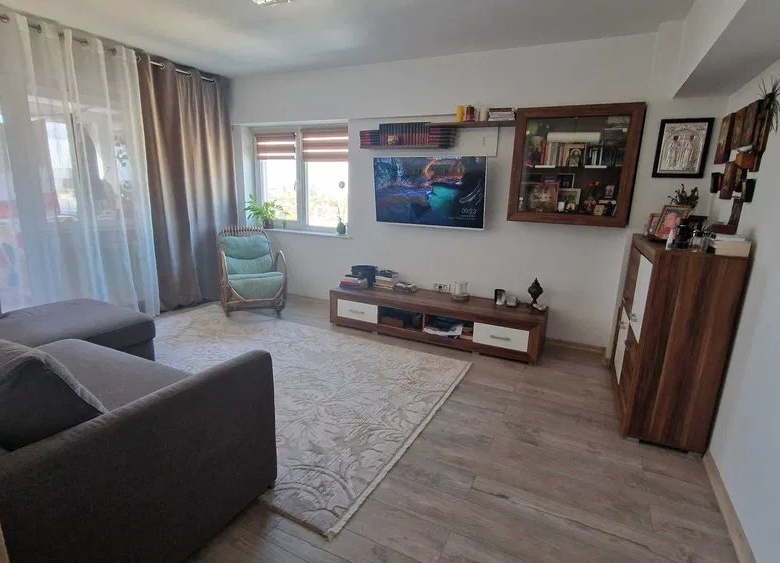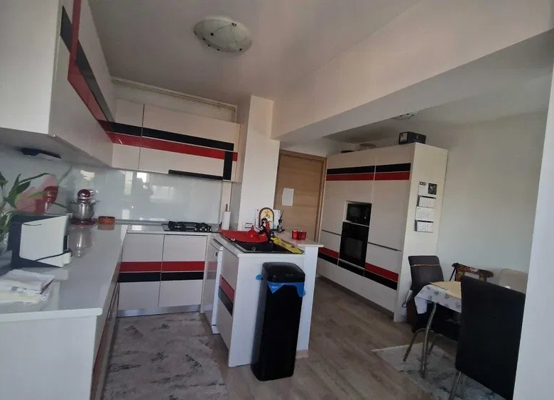 Deximo va prezinta spre vanzare un apartament modern si spatios in suprafata de 81 mp, de 4 camere decomandate, transformat in 3 camere, situat in Zona Casei de Cultura, la ultimul etaj unui bloc de 10 etaje, compartimentarea actuala fiind urmatoarea : living, hol, bucatarie oepn space, 2 dormitoare, 2 grupuri sanitare, balcon. La interior, a fost renovat, instalatia sanitara si termica au fost inlocuinte, dispune de finisaje moderne, se vinde mobilat si utilat complet dupa cum se poate vedea in fotografii, dotat cu centrala pe gaze si 2 aparate de aer conditionat. Deasupra apartamentului se afla un uscator cu acces exclusiv, inchiriat de la asociatie.