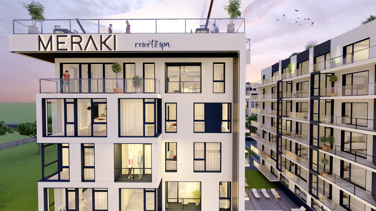 Vă prezentam spre vânzare un apartament de 2 camere, situat in Zona Mamaia Nord, in cadrul Complexului Imobiliar Meraki Resort&SPA, se vinde la cheie si beneficiaza de următoarele dotări și finisaje: